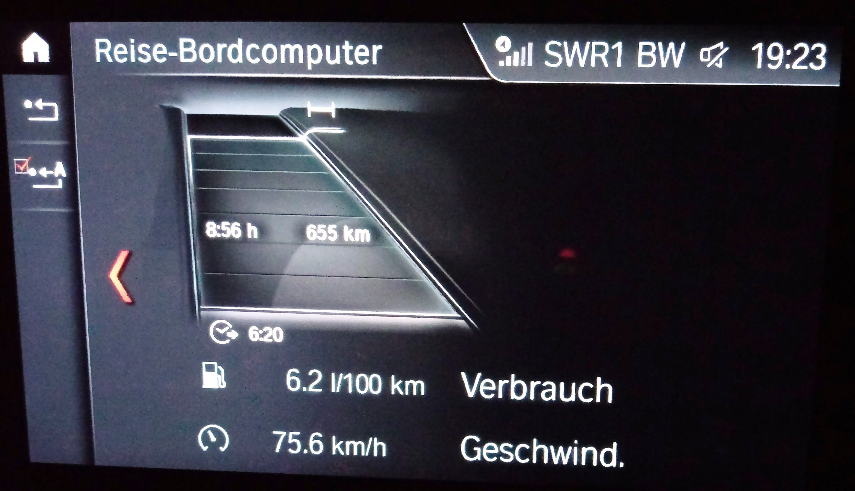 Verbrauch ohne nachzuladen nach 655 km